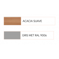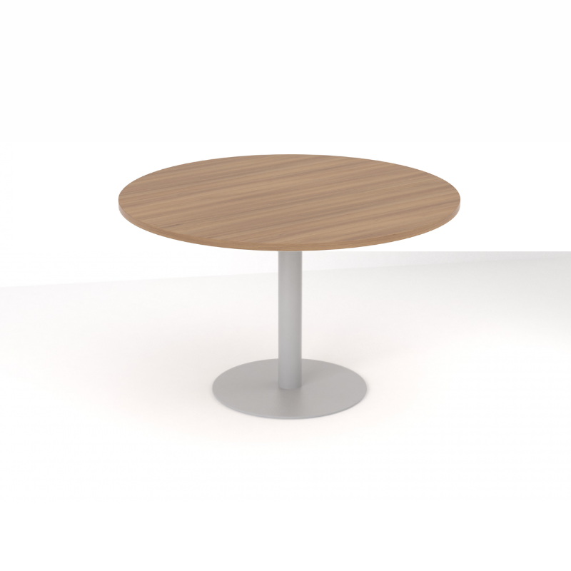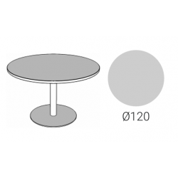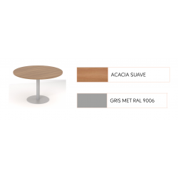 Mesa juntas Ø120. Tapa laminada Acacia suave, pie central Gris metalizado