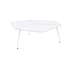 También disponible mesa regulable en altura, ayudando a trabajos colaborativos. Caracterizada por su forma hexagonal, facilitando a su vez el trabajo en equipo y aportando movilidad y dinamismo a las reuniones de trabajo entorno a ella.