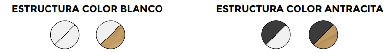 Los pies incorporan niveladores de regulación en altura de 2 cm. Todo ello pintado según modelo. El tablero es de melamina de 25 mm de grosor color según modelo y canteado en PVC de 1 mm del mismo color.