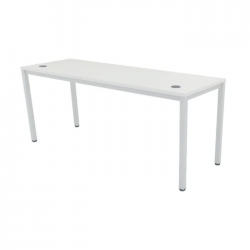 Aporta un diseño minimalista en la oficina. Estructura perimetral de acero, pintada epoxi gris o blanco. Sus patas son ligeras (40x40 mm) y resistentes. Con niveladores de altura.