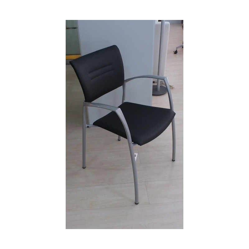 Sillón fijo con brazos. Asiento y respaldo tapizado en piel sintética, estructura metálica 4 patas color Aluminio.