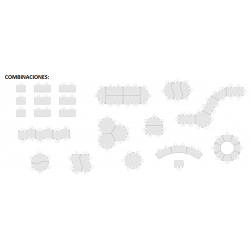 Conjunto de mesas y escritorios combinables en diferentes colores