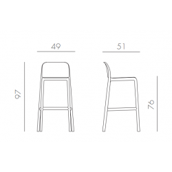 Taburete de una sola pieza de resina de fibra de vidrio con líneas pulidas y esenciales. Estructura tubular sin interrupciones y medidas generosas para permitir una silla ágil y cómoda. Ligero, se puede apilar y no requiere un mantenimiento especial.