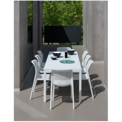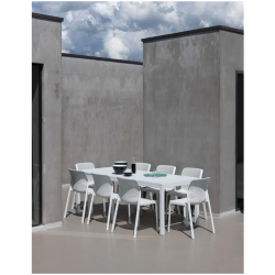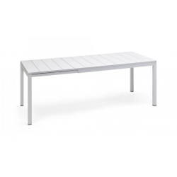 RIO tiene un sistema patentado de alargamiento que permite desplazar la estructura manteniendo las patas siempre en el extremo de la mesa, y eliminando de esta manera la desagradable incomodidad de las dimensiones de los soportes. La mesa ha sido proyectada con un perfecto sistema de enganche rápido de las prolongaciones: una vez se ha alargado, RIO es en todos los aspectos una larga mesa fija sin ningún problema estético u obstáculo.