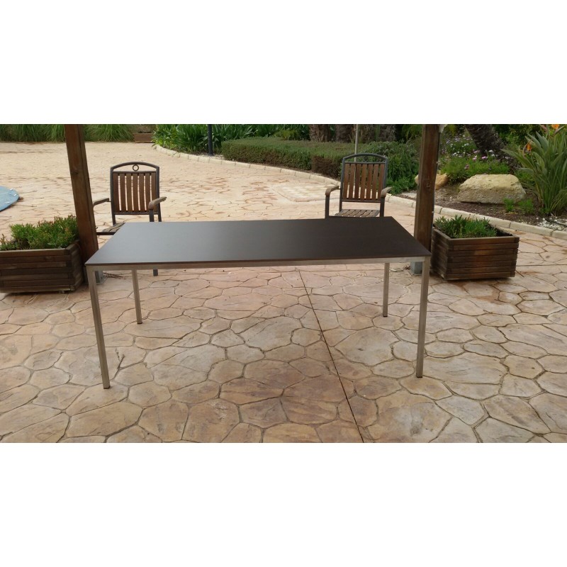 También realizamos mesas para exterior, en éste, con tablero fenólico wengué y estructura inox. Nuestro cliente necesitaba una mesa especial para el jardín. Las medidas son adaptadas a las necesidades de cada espacio.