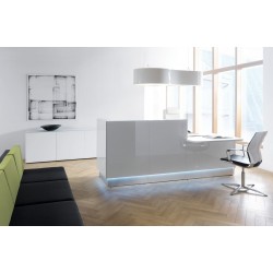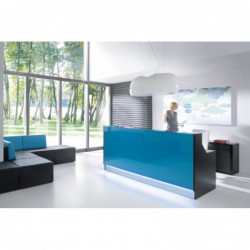 Mostrador diseñado con sencillas líneas, con una imagen luminosa y un frente brillante en diferentes colores, que aportan un gran estilo a cualquier espacio. La iluminación LED instalada en la parte inferior del mostrador acentúa la elegancia y le añade sofisticación.