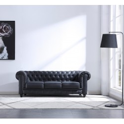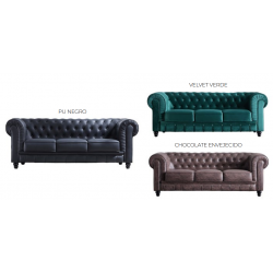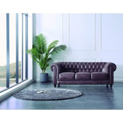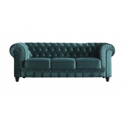 Sofá 3 plazas estilo vintage con estructura y patas de madera.