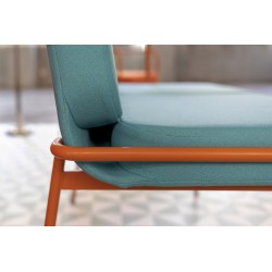 Estructura curvilínea y ligera que irradia el deseo de disfrutarla en compañía, mientras que el tapizado artesano y los detalles de calidad confieren sensaciones de elegancia y confort.